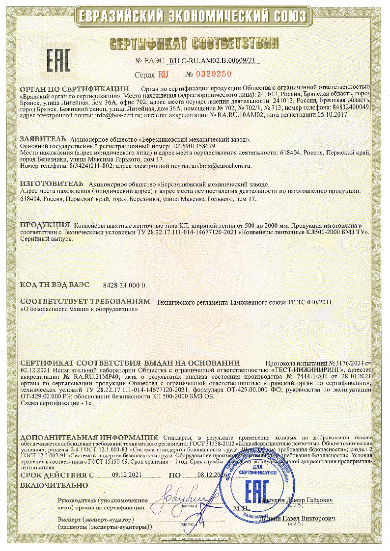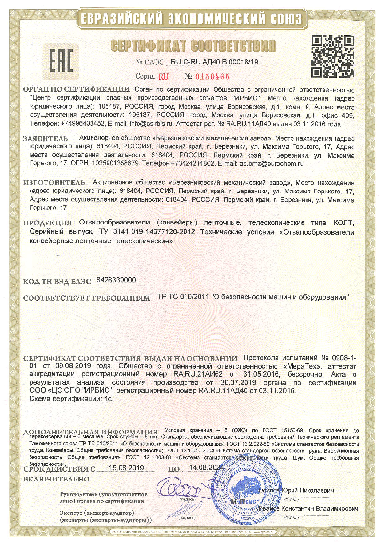 | 2016 | произведен конвейер ленточный передвижной КЛП 1200.00.000 |