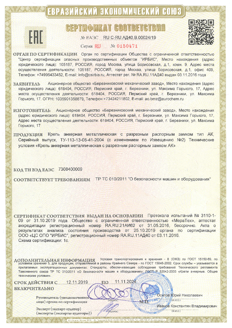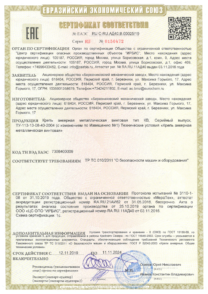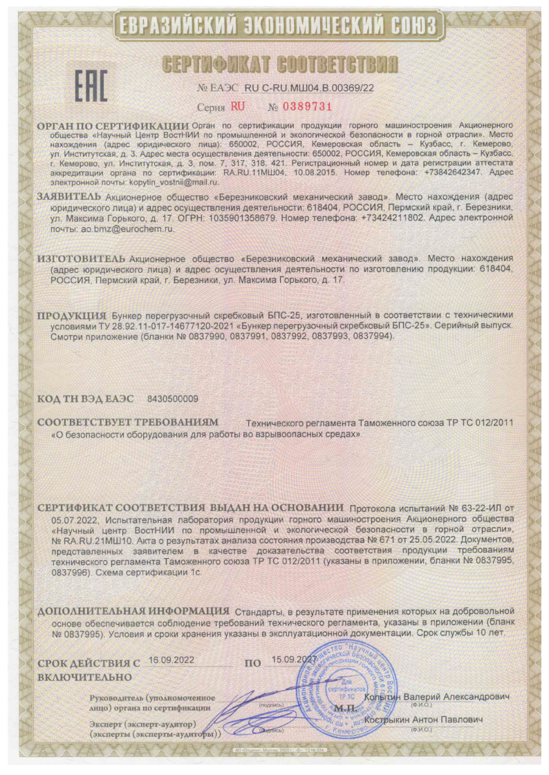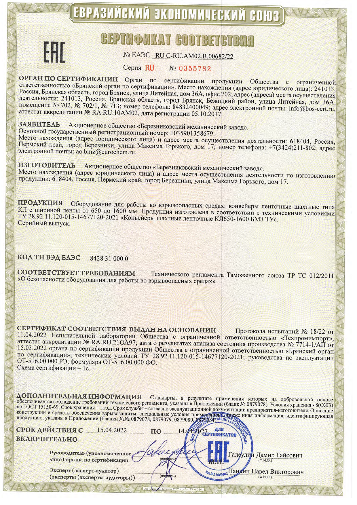 | 2015 – 2018 | оснащение емкостными и конвейерным оборудованием рудника и флотационной обогатительной фабрики Усольского калийного комбината, рудника Еврохим – ВолгаКалий, техническое перевооружение завода АО «БМЗ» |