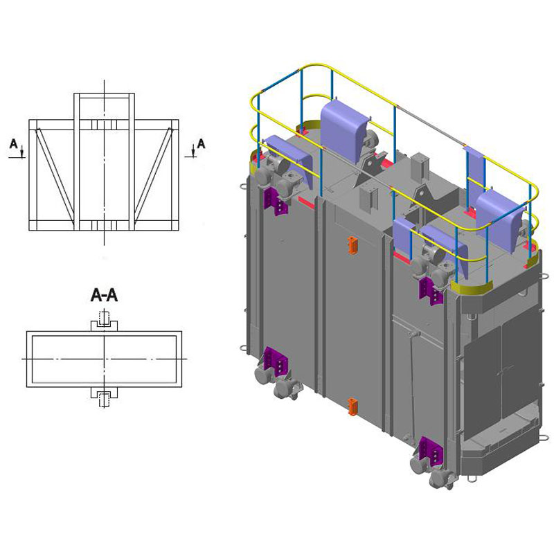 Mine cages for single-line hoisting КО, КНО, НВ and НОВ (hereinafter referred to as Cages), are used to transport workers, hoisting materials and equipment in vertical mine shafts in organizations coming under various areas and institutions. Cages are designed specifically for macroclimate regions in accordance with category U and standard GOST 15150-69.